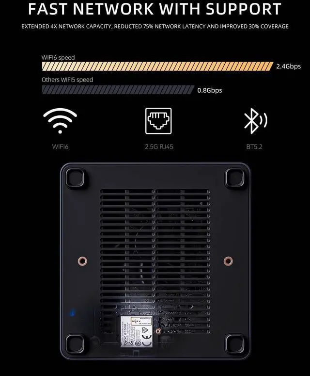 • COLD WAVE 2.0Adopting innovative liquid metal cooling system, mini pc UM790 Pro offers active memory and SSD cooler (quiet fan + large heatsink). Cold Wave 2.0 offers better cooling performance with lower noise level. Therefore, UM790 Pro can fully utilize its processor, memory and SSD performance. The metal case further improves the cooling performance and offers