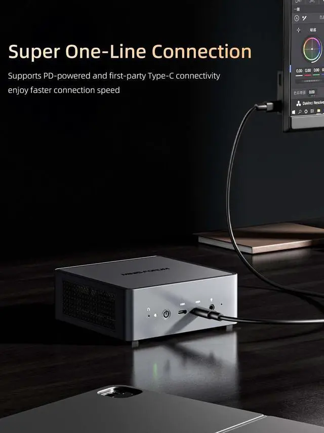 Cold Wave 2.0 offers better cooling performance with lower noise level. Therefore, UM790 Pro can fully utilize its processor, memory and SSD performance. The metal case further improves the cooling performance and offers powerful performance for a smooth gaming experience. ^^ Intel Killer Wi-FiIntel Killer AX1675x wireless card with a maximum speed of 2.4G bps, 2x2 Wi-Fi6E 160Hz high-speed network, Bluetooth 5.2, offers speed and stability comparable to wired networks. With the unique Killer Intelligent Center you can analyze and optimize your wireless network completely and intuitively. ^^ 2 x USB4 & HDMI 2.1UM 790 Pro features 2 fully functional 40G full-speed USB4 ports with support for PD-IN and PD-OUT.