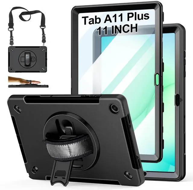 Inch: TPU Samsung Tablet A11+ Cover 2025 With 360 Rotating Stand- Screen Protector -Hand Strap - Shoulder Strap - Pencil Holder -