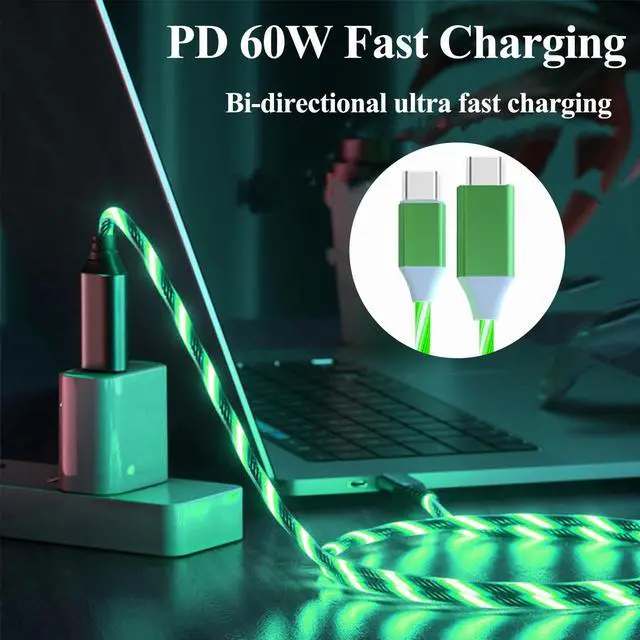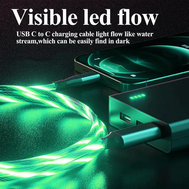 Current Flowing Cable: Visible LED light up USB C to USB C Cable fast charging cable with data transfer, which flow like stream, creating a strong sense of technology atmosphere. You can find your phone easily in dark and light up type C to USB C charging cable isn't too bright to interrupt or distract you when driving and sleeping. ^^ Fast