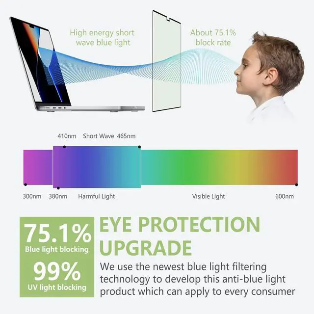 Anti Blue Light: With an anti-glare, The screen protector can cut 64.9 % of the HARMFUL BLUE LIGHT. It reduces eyestrain and headache, computer vision syndrome (CVS) and other damages, and also helps you sleep better. Enjoy your digital time ^^