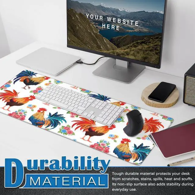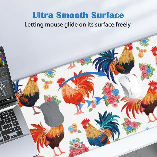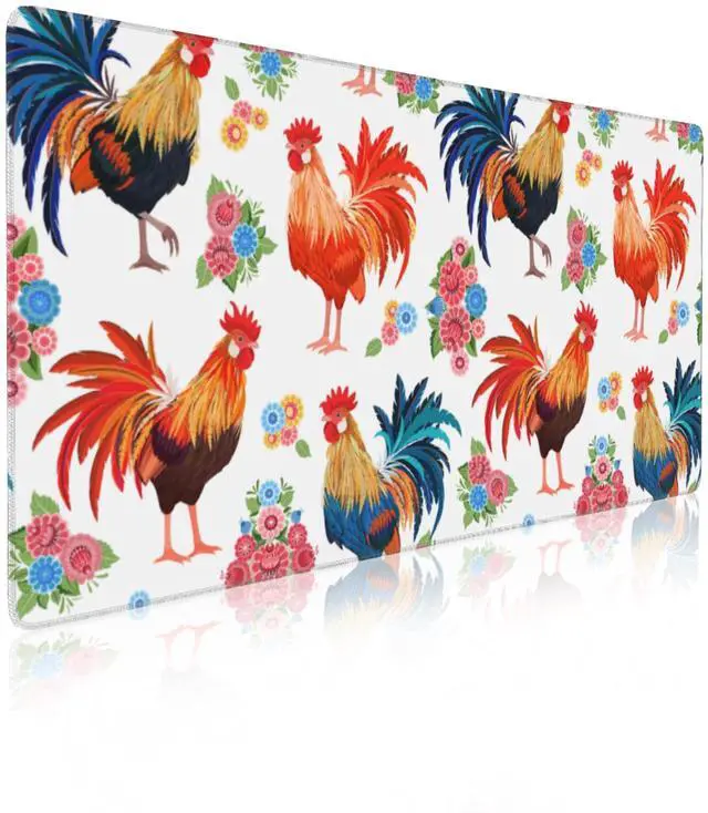 Large Mouse Pad,Rooster Mouse Mat for Home and Office,Colorful Cockerels Flowers Large Gaming Mouse Pad for Laptop Keyboard Mat with Non-Slip Rubber Base,Stitched Edges (31.5"x15.7")
