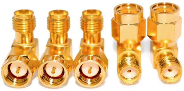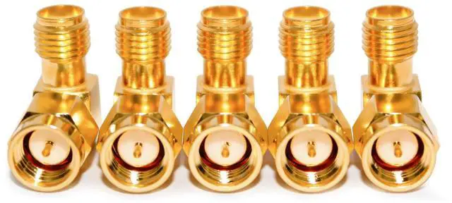 Coaxial adapters are used to transmit radio frequency signals with a wide frequency range, mainly used in radar, communications, data transmission and aerospace equipment. They are made of copper gold-plated material which can ensure a lower VSWR for higher transmission efficiency. Compatible with Wi-Fi/ Coupler for Antenna / Signal Booster / Repeaters / Radio / RF Coaxial Coax / RF Cable etc. The right angle adapteris easy to install and disassemble. This product is cost-effective and ideal for RF/microwave measurements in factories and laboratories.