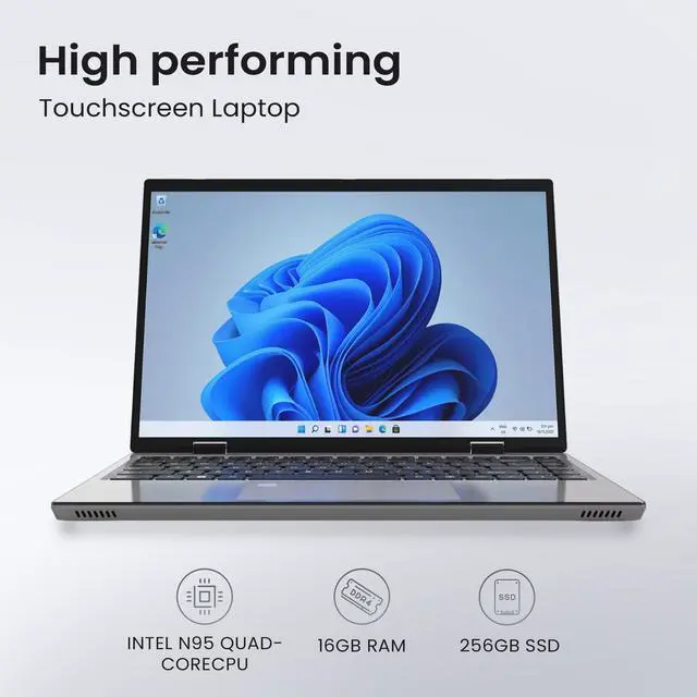 Powerful Performance Laptop: Experience lightning-fast computing with Intel N95 Quad-core processor clocked at 2.9 GHz and 16GB RAM for seamless multitasking.