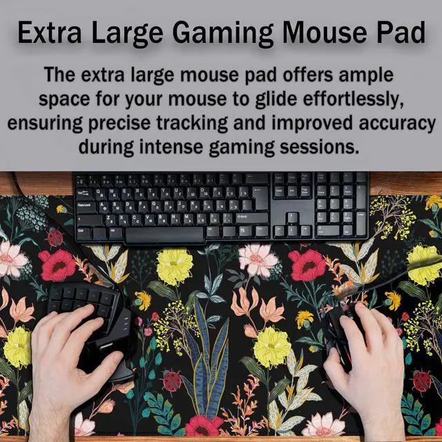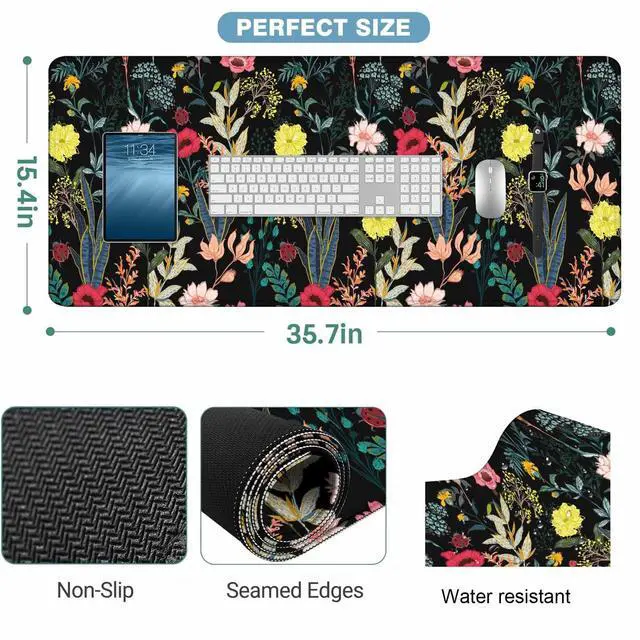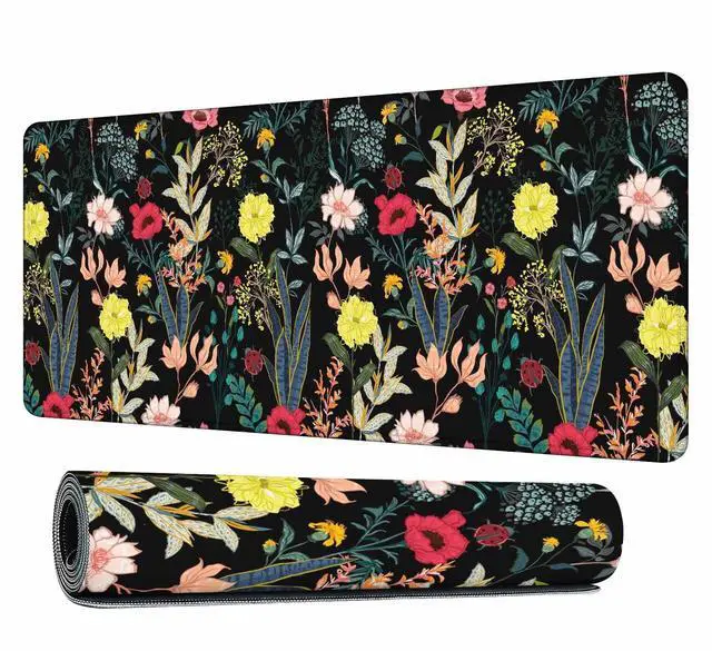 Y YIHANGBEST Floral Design Mouse Pad Vintage Botanical Garden Spring Flowers Blooming Keyboard Mat Large Gaming Mousepad for Desk,Office,Bed 35.4"X15.7"