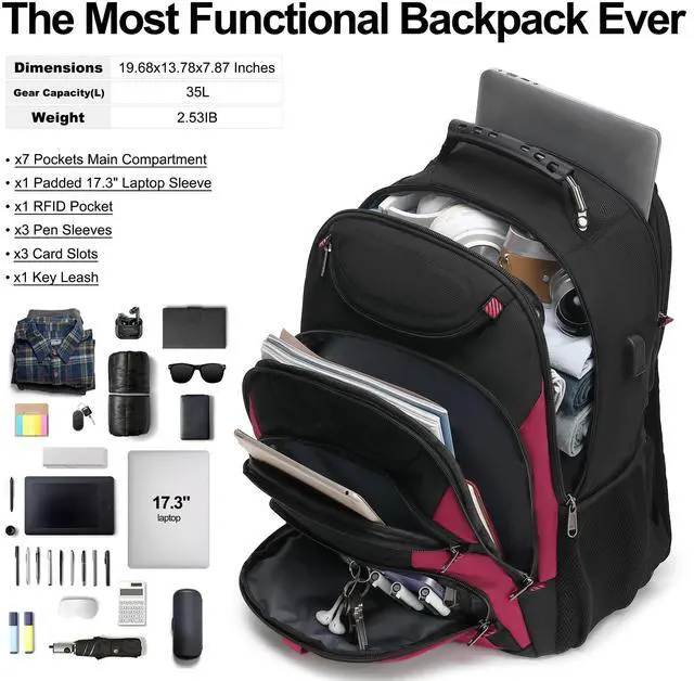 College Life Redefined: This backpack isn't just a bag; it's a statement. The spacious main compartment easily accommodates your textbooks, notebooks, and a 17.3 -inch laptop, keeping your essentials organized and protected. Say goodbye to the hassle of juggling multiple bags ^^ Comfort on the
