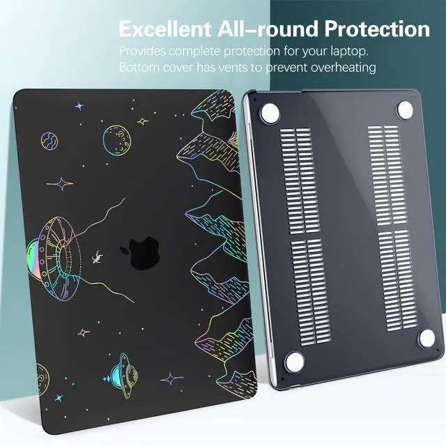 KEROM Clear Black Case with Patterned Design, tailor-made for your MacBook Pro 13 inch from 2016 to 2022 (Models: M2 M1 A2338/A2289/A2251/A2159/A1989/A1706). Designed with an ultra-thin plastic hard shell case with a silicone keyboard protector, it provides complete protection for your valuable laptop. Designed with the unique ultra-crystal feature, this case allows you to showcase the original sleek and modern aesthetic of your MacBook Pro while keeping it safe. Whether you're working or playing, the KEROM case is the perfect companion for your MacBook Pro 13.3 ''. In addition to its stylish appearance, this case is highly durable and scratch-resistant. Made from high-quality plastic, it is precision-engineered to resist bumps, scratches, and fingerprint smudges encountered during daily use, ensuring your MacBook Pro stays looking as good as new. The KEROM team pays great attention to detail, ensuring every corner and opening is meticulously designed for a perfect fit. This design does not interfere with the daily use of the ports or the opening and closing of the device. Whether you prioritize simplicity or practicality, this KEROM MacBook Pro 13 inch cover case will meet your needs. It protects your MacBook Pro from accidental damage while allowing your personality and taste to shine through.