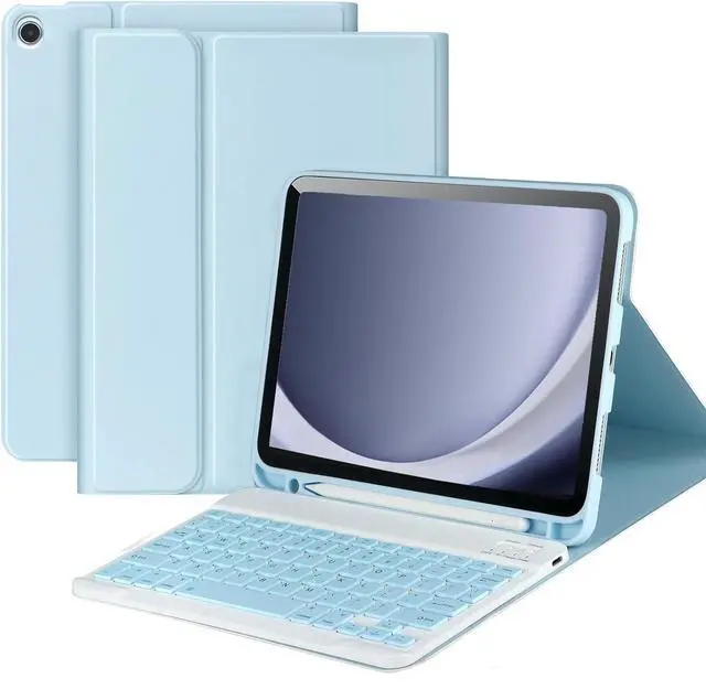 Keyboard Case Compatible for Galaxy Tab A9 Plus/A9+ 11 Inch 2023 Model SM-X210/X216/X218, Wireless Bluetooth Keyboard Cover Compatible for Samsung Galaxy Tablet A9+ Built-in Pencil Holder- SkyBlue