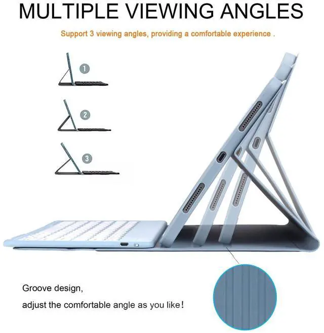 Three Viewing Angles: providing a comfortable typing experience. you can adjust the angle to your preference, Three dents on the case for propping up the tablet into three different viewing angles, Perfect for watching, working or playing games