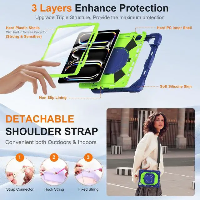 Shockproof and Scratch-Resistant: Auorld Case for iPad Pro 13 Inch M5 2025 / M4 2024 - adopts an advanced three-in-one structure; made of high-quality PC and shock-absorbing silicone material, the military-grade shockproof shell can effectively prevent accidental drops, bumps, slips, and scratches. This Case for iPad Pro 13 Inch M5 2025 / M4 2024 comes with a built-in screen protector ^^