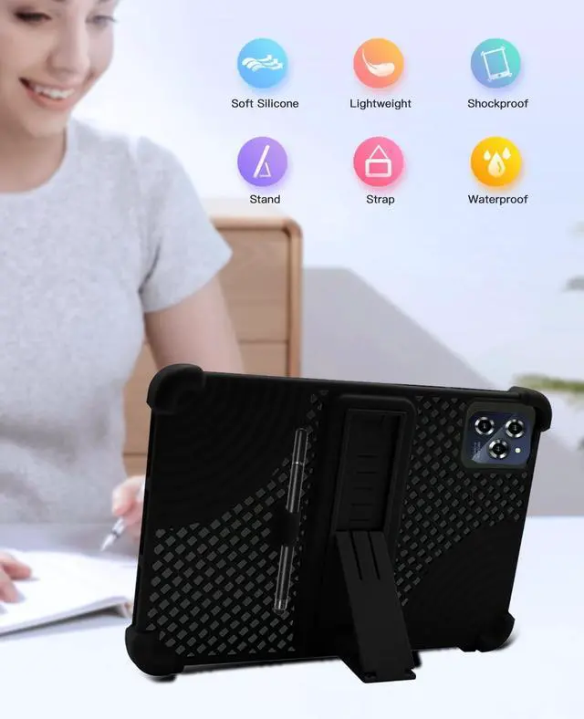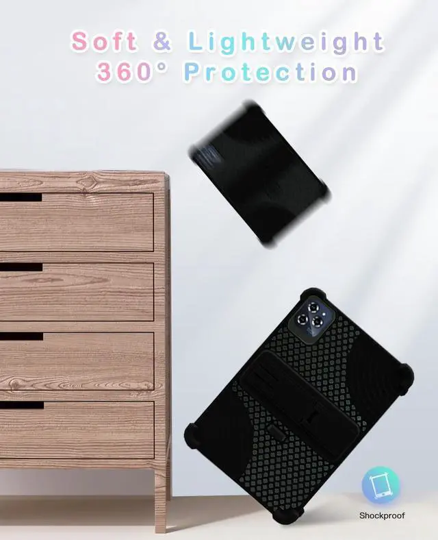 Design and FeaturesStrong heat dissipation at the bottom of the hive, Four corners thickened shockproof, Washable, no deformation, no discoloration, safe and convenient to use. Stand Cover Built- in Kickstand, Scientific stand design to provide comfortable viewing angles when watching vedios, texting, gaming or learning etc. Full-Body ProtectionCase is made of shock-absorbing Non-toxic silicone material, protect your tablet from accidental drops, bumps and shock. NoteOnly the one protective case is included, the tablet is not included. Worry-free after-sales serviceIf you have any questions about our products, Please feel free to contact us via mail.