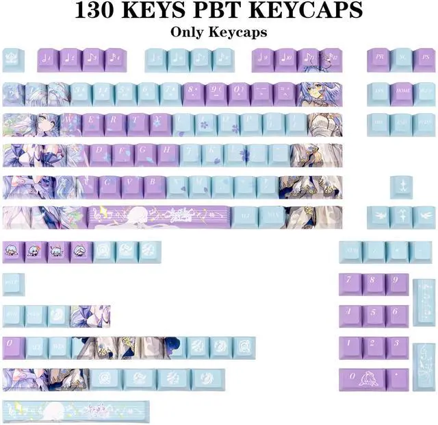 ^^ Widely Compatible: This set of Japanese Anime keycaps has a total of 130 keys keycaps, which are suitable for most 60%, 65%, 95% keyboard, It can fit most 61/64/68/84/75/87/96/104/108 mechanical keyboards. ^^ Cherry Profile The keycaps are designed with a Cherry profile to give you a long-lasting comfortable typing experience. You won't feel fatigued when using it for a long time at work or in games.