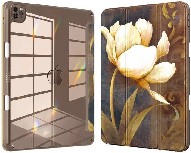 VIKESI for iPad Pro 11 Inch 4th/3rd/2nd/1st Generation Case, iPad Air 11-inch / 5th / 4th Generation Case with Clear Back,Pencil Holder,Auto Sleep/Wake,Camera Protection,Tulip