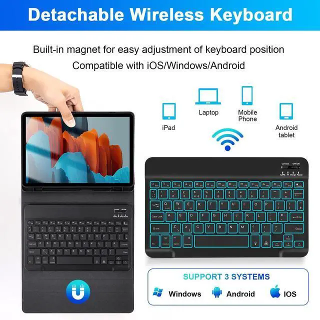 S9 FE 10.9" (Model: SM-X510 /X516B/X518U) /S8 2022(SM-X700/X706)/ S7 2020(SM-T870/T875/T878). ***Please Click your tablet "Settings-System-About Tablet Model--SM-XXXX") confirm model number before ordering. Not fit for 12.4 inch S8+/S7+/S7 FE/S9+/S9 FE+/S10+! ^^ Maganetically Removable Wireless KeyboardThis case with keyboard used for 11 inch Samsung S7/S8 Tablet, using a flip magnet separate design; Detachable Bluetooth keyboard with a magnetic hybrid case that transforms your tablet into a highly performant and easy-to-use laptop. ^^ Full Protective Case with S Pen Holder The premium composition leather exterior and soft, non-slip interior protect your tablet from accidental drops and scratches. The built-in Pencil holder allows you to take your Pencil wherever you want.