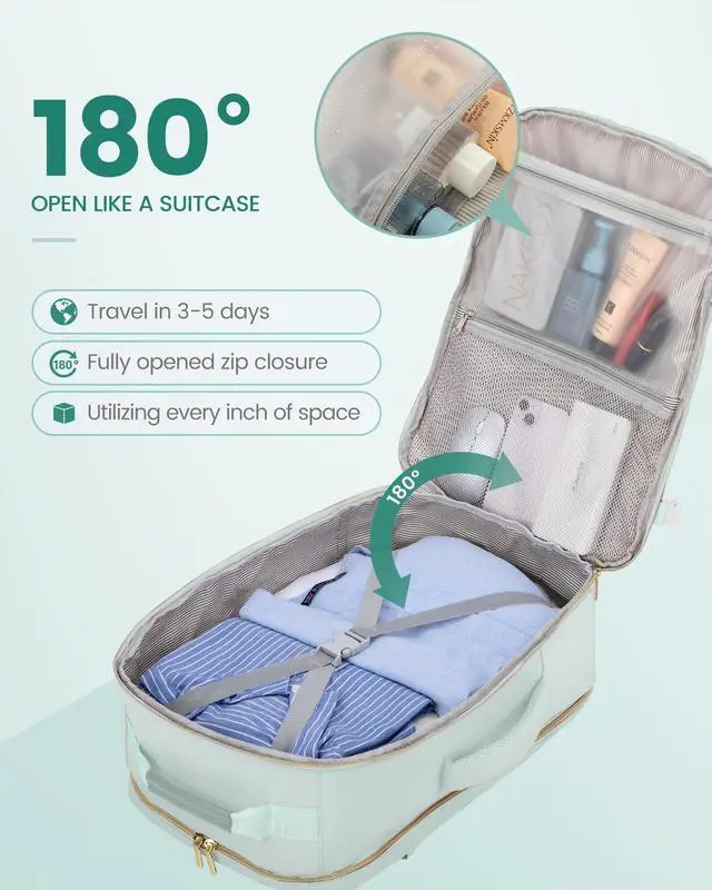 As Personal Item Airline Approved: The size of the carry on backpack is 18*14*8inch. Meets the maximum size allowed by most International Air Transport Association (IATA) flights, and can be placed in the overhead luggage compartment and under seat luggage for airlines, suitable for Spirit, Frontier, Easy Jet, Jet Blue, and other airlines. This travel backpack for women airline approved can be freely opened 90-180 degrees easily and quickly at the airport security check. ^^ With 3