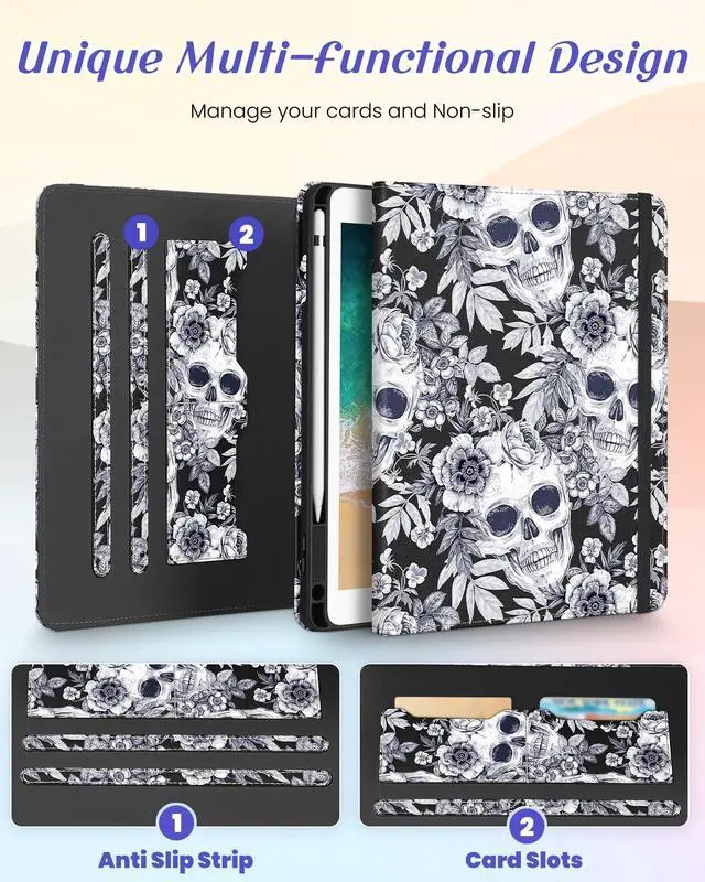Multi-Functional Design: This for iPad cover 5th generation case/for Apple for iPad Air 1st generation case/for iPad Pro cover 9.7 inch case features an elasticized cord strap, which ensures that your tablet closes securely, provides slip or drop protection. It also has two card slots designed to hold your bank cards business cards and other cards