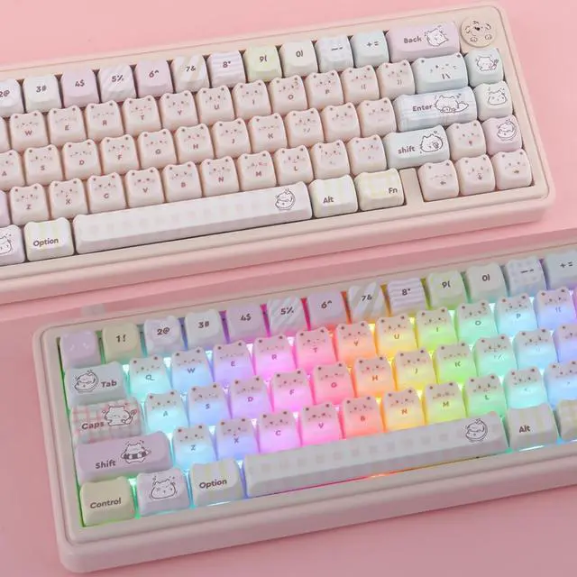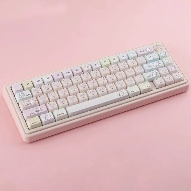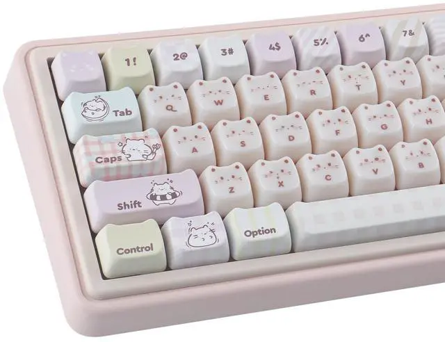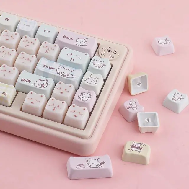 Please pay attention when purchasing. ) ^^ Double Shot Dye-Sub KeycapsThese keycaps are made of two layers PBT material that are molded into each other without printing. Advanced dye sublimation technology allows colors to penetrate into the keycaps, making the fonts and cat patterns on the keycaps very clear and beautiful, ensuring a long-lasting and comfortable gaming experience ^^ MAO Profile KeycapsThe cute keycaps designed with the MAO profile, and increases the contact surface between the keycap and the fingers, you won't feel fatigued when using it for long time during work ^^ Widely Compatible135 keys pbt keycaps can be used for most cherry MX switch mechanical keyboards and any keys with "+"Switches, it can fit for 61/64/68/75/84/87/96/98/104/108 mechanical keyboard (ONLY KEYCAP)
