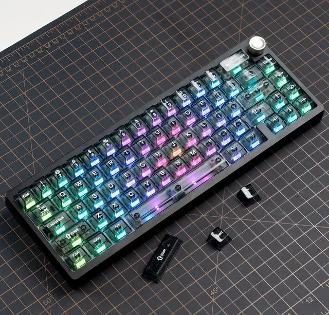 Durable and long-lasting materialMade of advanced PC material, these gaming keycaps are resistant to friction, wear and tear, ensuring a long-lasting and comfortable gaming experience. ^^ Transparent keycap set Shine through keycapsHd light transmission features, minimalist style, enhance the beauty of mechanical keyboard, so that your keyboard looks high-end atmosphere. ^^ Ergonomic Cherry Profile Key capsClassic design. Ergonomically, it won't be tired after long-term use. ergonomic design cherry height, designed for backlit/non-backlit mechanical keyboards. ^^ Widely CompatibleOur 115-key set is designed to fit full-size keyboards, 75% keyboards, and smaller.
