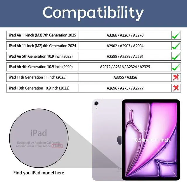 Note: Apple pencils are not included in our product) ^^ [Multi-Angle Stand] - Magnetic tri-fold stand creates a stable viewing and typing mode for iPad. The precise cutout design gives you full access to all features (buttons, speakers, camera, charging port).