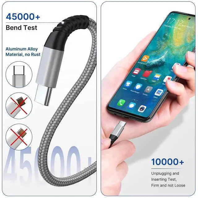 Super Durability: This USB-A to USB-C cable is made of high-quality nylon material woven, can withstand 45,000 times bending test, abrasion resistance is extremely strong, no longer afraid of being bitten by pets.