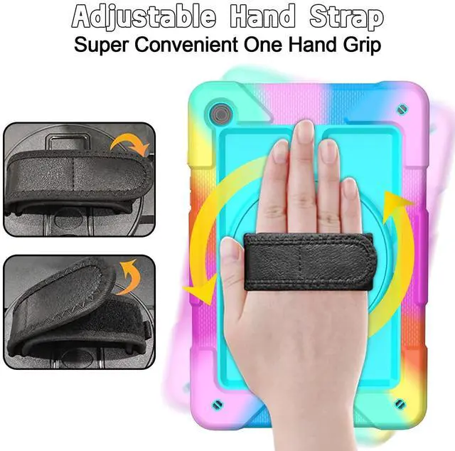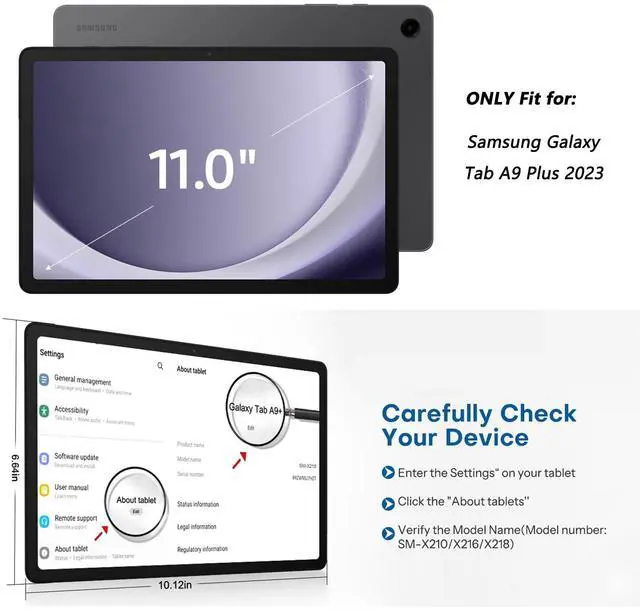 CompatibilityExclusively designed for Samsung Galaxy Tab A9 Plus 2023 tablet (SM-X210/X216/X218). NOT fit for other Samsung tablet model. ^^ Rotatable Stand + Hand Strap360 Rotating Kickstand provides multi-angle viewing, with soft handle strap, easier to hold and use your tablet in your outdoor traveling, working, gaming with kids. ^^ Portable Shoulder StrapThe adjustable shoulder strap provides the secureest protection and more convenience when you play or work with Samsung Tab A9+. Hang it anywhere for better entertainment experience, free your hands. ^^ Reliable ProtectionHard PC front cover, PC back cover, plus silicone shell, tri-layer altogether provide max protection for your Samsung Galaxy Tab A9+ Plus 11-Inch.