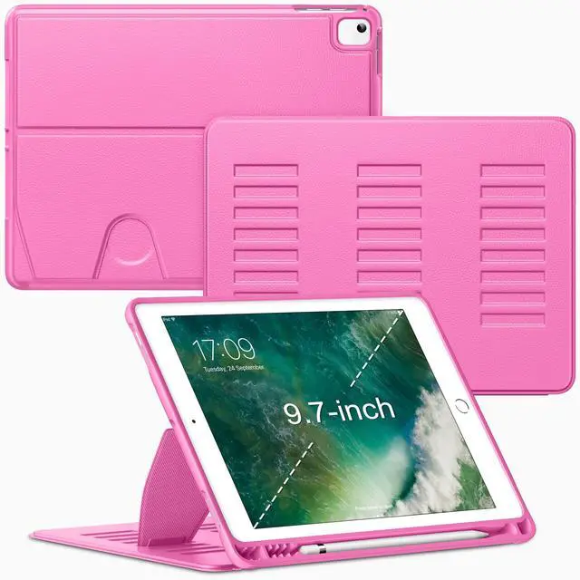 VIKESI Case for iPad 6th / 5th Generation (2018/2017 Released) 9.7-inch and for iPad Air 2/1,Multiple Angles Magnetic Stand Cover,Shockproof Soft Back,Pencil Holder,and Auto Sleep/Wake,Rose
