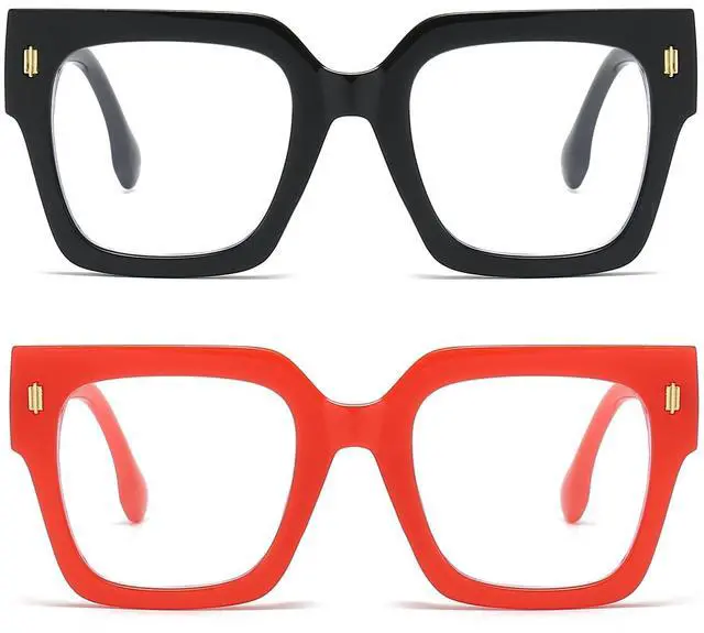 FASHION BIG SQUARE DESIGN: Oversized square black frame clear lens glasses is the modern style, classic square thick frame with metal rivets for added style. ^^