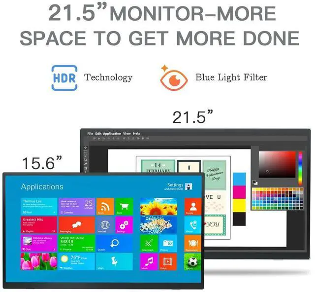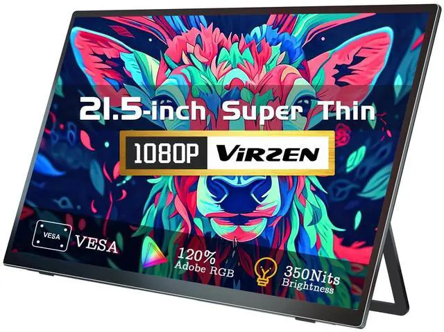 Plug-and-play portable monitor with a super-large screen---The Virzen 21.5 -inch portable monitor is currently the largest portable display available, offering a broader viewing area. This 21.5 -inch large-sized and ultra-thin monitor provides unparalleled visual experiences for your work, business, gaming, and entertainment. The Virzen -inch monitor is plug-and-play, requiring only a single USB-C cable to connect to your computer, XBOX, Console, laptop, mini PC, and more. ^^ Frameless, ultra-thin, and portable---Compared to traditional bulky computer monitors, the Virzen 21.5" large portable monitor achieves a perfect balance between screen size and portability.