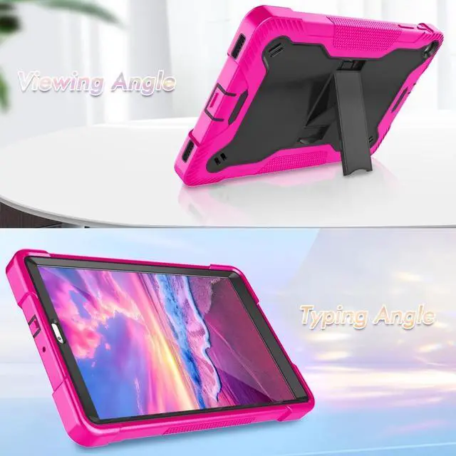 Hybrid Design: The shock resistant silicone exterior and inner hard plastic bumper providing perfect protection for your Samsung Tab A 10.1 2019 against accidental drops, scratches, shocks and dusts, helping keep your tablet keeps original beauty ^^ The samsung tablets 10.1 inch case 2019 is made from high-grade thermoplastic polycarbonate and anti-skidding silicone, four corner cushioning creat full-body protection for your tablet. The high-quality, non-toxic silicone sleeve is not only shockproof and durable, but also comfortable to touch ^^ Cover built with stand to enjoy typing, gaming or video watching. Raised lips around the screen and camera help reduce the possibility of being scratched and shattered ^^ Allows easy access to all buttons, controls and ports without having to remove the tablet from the case. port plugs of the case prevent dust from entering into Galaxy Tab A 10.1 Inch 2019