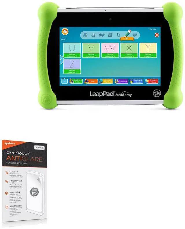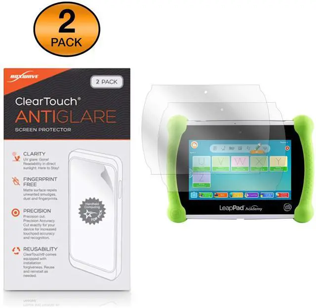 🌞 [ANTI-GLARE] BoxWave Screen Protector Compatible With LeapFrog LeapPad Academy. Two (2) Award-winning Anti-Glare Screen Protectors, precision-cut to fit your LeapPad Academy's exact dimensions! Keep the extra one for back up later, or share one with a friend! ^^ 💪 [STRENGTH AND STABILITY] Dual-layered high-grade PET designed for durability; PROTECTS your screen from scratches, fingerprints, and dust ^^ 😎 [UV PROTECTION] Reduces 90% of UV rays caused by reflected light, protecting your eyes ^^ 🧩 [PERFECT FIT] GLUELESS adhesive bonds perfectly to your screen and will never leave a sticky residue after peeling ^^ 💼 [INCLUDED] Each package contains two (2) ClearTouch Anti-Glare screen protectors for your LeapPad Academy, ClearTouch Applicator card, and microfiber cleaning cloth.