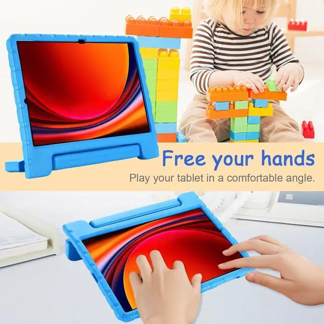 Features: * Made of lightweight sturdy child friendly and thick EVA foam to guard your tablet at home or in the classroom. * Anti-slip soft outer layer case provides great handling and extra cushion for impact resistance. * Easy-to-grip, large handle designed to comfortably hold with smaller children's hands. * The handle is also a kickstand with 2 viewing angles for watching movies & typing. * Perfect for all families with children, no worry to break the tablet by wild kids.