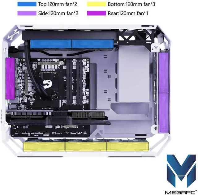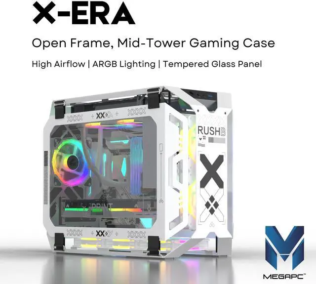 The X-Era gaming PC case features a customizable open-frame design, available in a sleek standard version or a personalized film-printed option. It supports both Micro-ATX and Mini-ITX motherboards, blending tempered glass panels with a durable SPCC 2.0 mm metal frame for a sleek, modern aesthetic. Designed for high-performance builds, it offers ample space for large graphics cards and flexible cooling options, including support for a 240mm water radiator or multiple fans. Equipped with ARGB LED lighting with 7 customizable modes, controllable via the case or motherboard sync, the X-Era also ensures neat cable management for a clean, organized build.