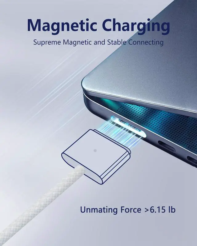 Supreme Strong Magnetism: The strong magnetism design of one end sharply guides the plug to match the charging port of your MacBook. Meanwhile it resists most unintended disconnects to ensure fast charging.