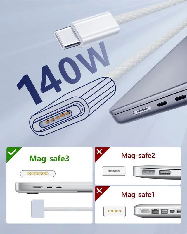 Your MacBook: The 140W USB-C to Magnetic 3 Cable is made for charging MacBook Air 13/15-inch M3 2024, MacBook Air 15-inch M2 2023, MacBook Air 13-inch M2 2022, MacBook Pro 14/16-inch 2023/2021.
