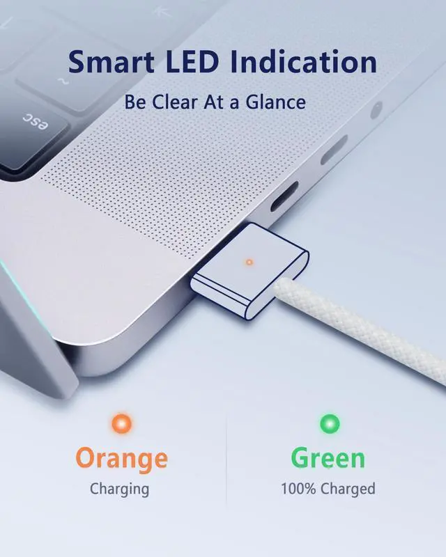 ^^ Smart LED Indication: The LED shows amber when the battery is charging and turns green while it is fully charged. You will find the charging status of your MacBook at a glance. ^^ Meet Your