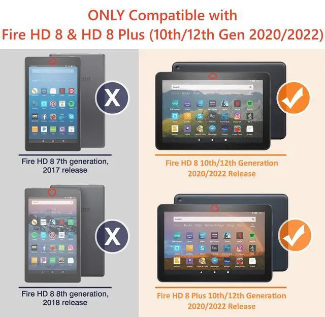 Plus 2024/2022/2020: ONLY Fits 8 inch Kindle Fire HD 8 Tablet and Fire HD 8 Plus (12th/10th Generation 2024/2022/2020 Release). *NOT FIT any other Kindle Fire Tablet, PLEASE CHECK your device model before purchasing ^^