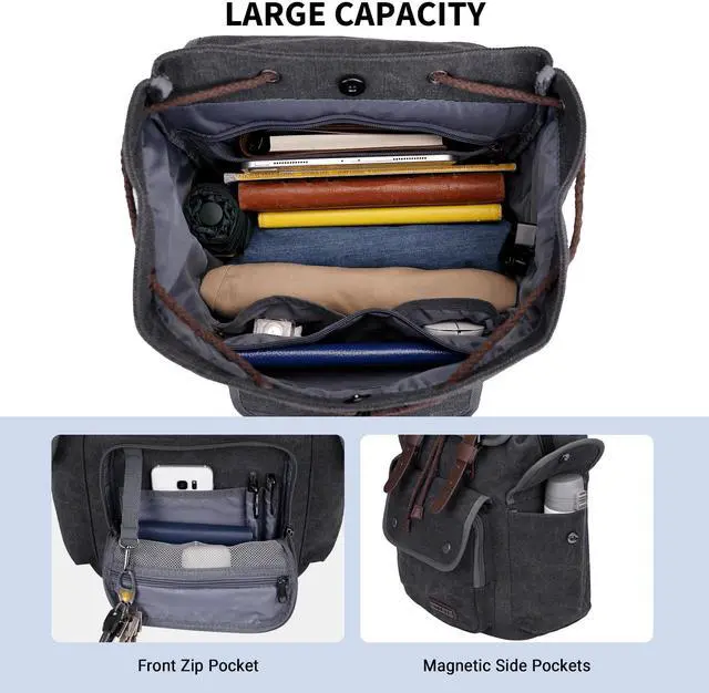 Material and Dimensions: This travel backpack is made of high-quality sustainable canvas and PU leather, with fashionable and fun tight stitching added to make it more sturdy. Length 31.7 x Width 20.3 x Height 44.4 centimeters (Length 12.5 x Width 8 x Height 17.5 inches).