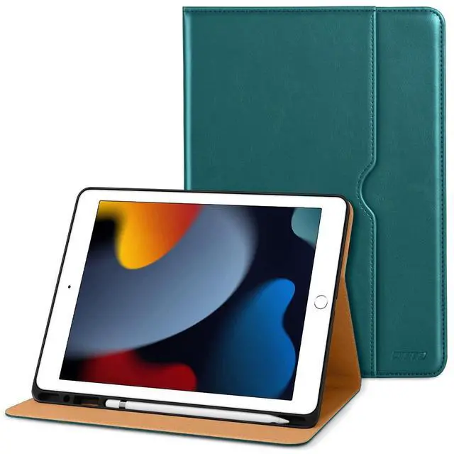 DTTO for iPad 9th/8th/7th Generation 10.2 Inch Case 2021/2020/2019, Premium Leather Business Folio Stand Cover with Apple Pencil Holder - Auto Wake/Sleep and Multiple Viewing Angles, Green