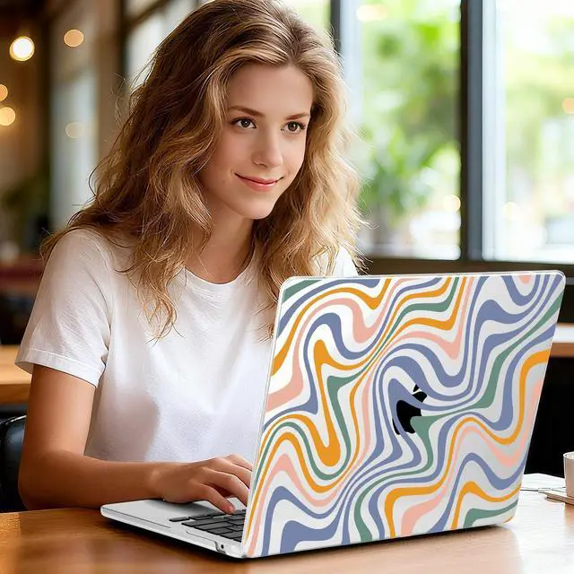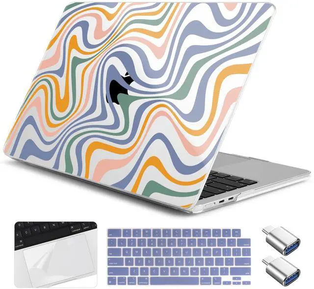 Yebiseven for M4 MacBook Air 15 inch Case 2025 2024 2023 Released A3241 A3114 M3 A2941 M2, Hard Shell Laptop Case with Keyboard Cover & Trackpad Film & 2 OTG Adapters, Trippy Waves