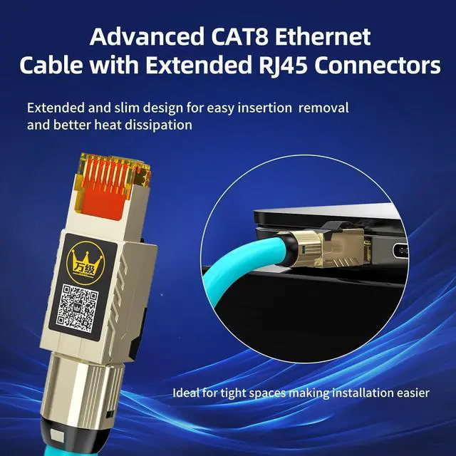 ULTIMATE SPEED & BANDWIDTH: Experience the pinnacle of networking with our Cat8 Ethernet cable. Delivers blistering speeds up to 40Gbps and a massive bandwidth of 2000MHz over distances up to 30 meters. Perfect for transferring massive files, powering smart homes, and building a future-proof network infrastructure that will serve you for years to come. ^^ PURE SOLID BARE COPPER & DOUBLE SHIELDING: Features 100% bare copper 26AWG conductors (NOT Copper-Clad Aluminum) with individual foil shielding (SF/FTP) plus a superior braided mesh outer shield. This robust construction ensures maximum conductivity, minimizes signal loss, and provides unparalleled protection against crosstalk (XT) and electromagnetic interference (EMI/RFI) for a rock-solid, stable connection. ^^ LAG-FREE GAMING & 8K