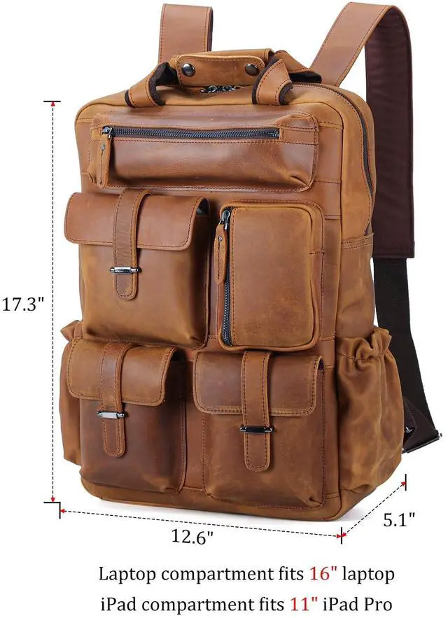 Dimensions: 32 (L) *13 (W) *44 (H) cm / 12.6 (L) * 5.1 (W) * 17.3 (H) inch. The inside sleeve fits 16 inch laptop. Main compartment accommodates an computer size of up to 17" laptop, an iPad size of up to 11. ^^ Improved Breathable & Soft Padded Backside. The back side comes with protective padded design, breathable and comfortable, easy to carry throughout all day. ^^ Improved Side Pockets. The improved side elastic pockets can hold water bottle and umbrella. ^^ Upgraded Shoulder Strap. We have upgraded the shoulder straps. They are now reinforced with double stitching, and we added 4 riverts to make sure they last a long time. ^^ 1 Year Quality Warranty and lifetime customer service!!!!!!