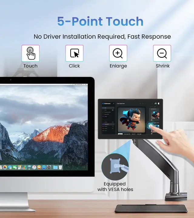 HD TOUCH SCREEN - 8 Inch Touchscreen monitor offers a resolution of 1280800and a 60Hz refresh rate, ensuring clear and detailed visual effects. The monitor uses an IPS panel with 45% NTSC color gamut coverage and a brightness of 300cd/m. This setup provides an immersive visual experience with realistic visual effects, especially when playing HD videos.