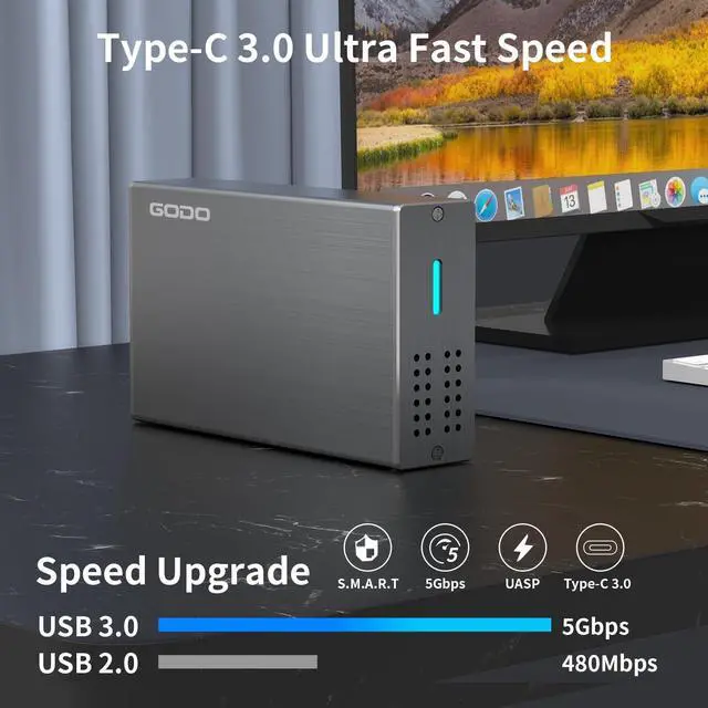 Widly CompatibilityGODO 2 Bay Hard Drive RAID Enclosure supports 2 x 2.5 inch 7mm/ 9.5 mm SATA I/II/III HDDs and SSDs. support 7/8. 1/10, Mac OS X 10. 6 or above, Linux Ubuntu 10. Kernel 2. 6. 38) or above ^^ USB 3.0 Ultra Fast SpeedThis GODO 2.5" SATA SSD/HDD RAID Enclosure equips with advanced chip and USB 3.0 output interface, the transfer speed can reach 6Gbps when using device with Windows 8.1 and above operating system and UASP TRIM USB Protocol. 1G files are transferred in 3 seconds.