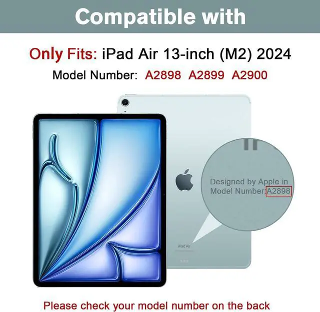 Compatible Models: Only Compatible with Apple iPad Air 13 inch M2 2024 Released, (Model: A2898 A2899 A2900); Not fit other models.