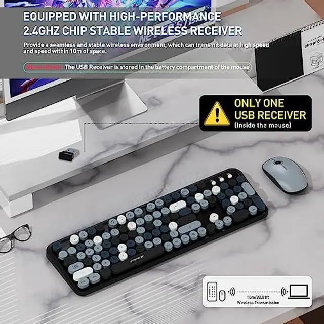 ^^ Wide Compatibility: Wireless Keyboard - Our wireless computer keyboard is 12 function keys for quick access to music, volume, mail, and more (please note that the hotkeys may not be fully compatible with Mac systems). This keyboard mouse combo is compatible with various operating systems, including Windows XP/ME/Vista/7/8/10/11. It works seamlessly with devices that have a USB slot, such as PCs, laptops, MacBooks, desktops, Chromebooks, and even Smart TVs. ^^ Colorful