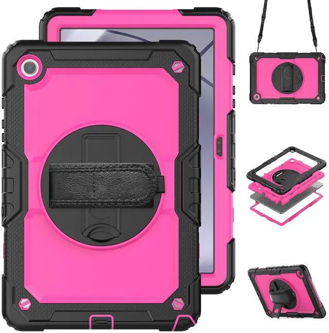 Gylint Case for Samsung Galaxy Tab A9+/ A9 Plus 11" 2023, Heavy Duty Shockproof Protective Case with Screen Protector, Hand Strap, Shoulder Strap, 360 Rotating Stand Pink+Black