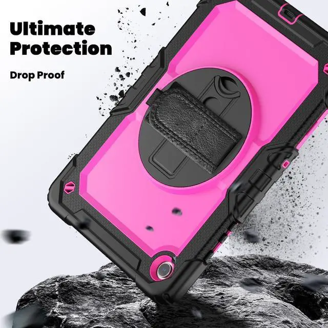 Built-in Kickstand is 360 degree rotatable kickstand offers optimum position for typing or viewing; Ergonomic and comfortable back handle allows you to grip your tablet securely and steadily with one hand, worry-free from dropping it