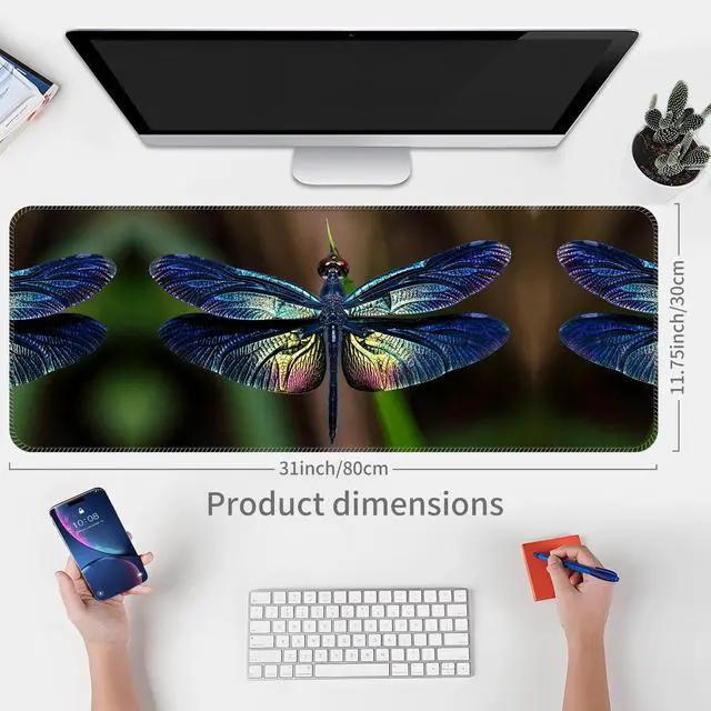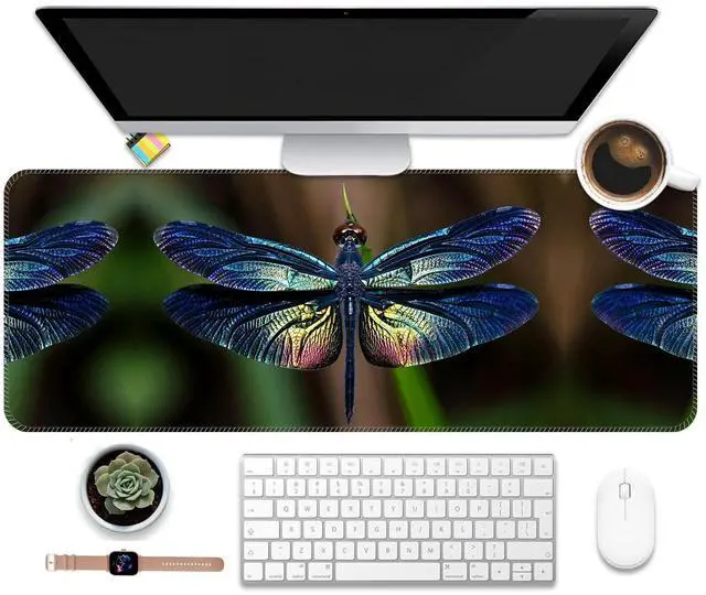 ALTEKO Large Gaming Mouse Pad, Computer Mouse Mat, Funny Desk Pad Protector Decoration, Big Cute Desk Pad, Non-Slip Base 31.5 x 11.8 in Boho Dragonfly