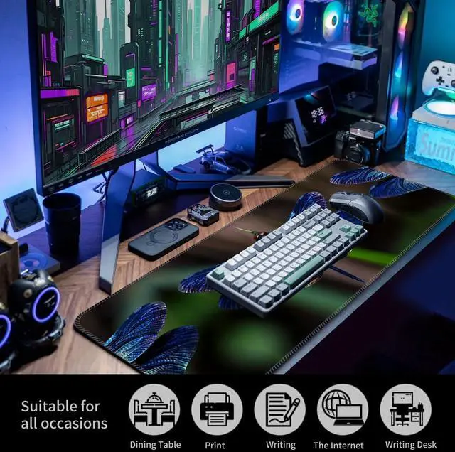 Durable, Precision-Engineered SurfaceCrafted with a fine-textured fabric, this computer mouse pad offers the ideal balance between smooth glide and superior control. Its specifically designed to enhance mouse tracking, providing exceptional precision for both optical and laser sensors. Whether youre gaming or working, the surface ensures your movements are reflected with remarkable accuracy, making it a great choice for anyone seeking a desk mat for desktop use. Plus, the material is highly durable, reducing wear over time and preventing the common fraying issues seen with lower-quality mouse pads. Non-Slip Base for Stability and ProtectionNo more worrying about your mouse pad shifting mid-game! This large mouse pad features a soft, dense non-slip rubber base that keeps the desk pad securely in place.