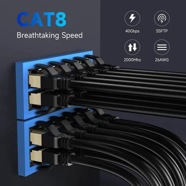 Broad Compatibility: This Cat8 Ethernet cable features shielded RJ45 connectors on both ends, enabling seamless connectivity with IP cameras, routers, modems, gaming consoles, patch panels, servers, network printers, NAS storage devices, VoIP phones, laptops, couplers, hubs, keystone jacks, smart TVs, iMac computers, and other devices equipped with RJ45 ports. Also compatible with Cat7/Cat5/Cat5e/Cat6/Cat6e standards. ^^ 26AWG